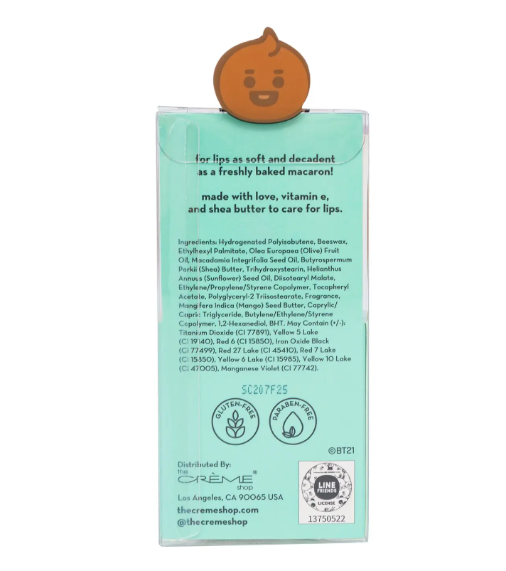 The Creme Shop introduces the new SHOOKY Macaron Lip Balm in Brown Sugar Milk Tea flavor, expertly crafted with shea butter and beeswax for a rich, creamy feel. This mauve-tinted balm not only delivers a subtle wash of color but also deeply nourishes and hydrates the lips for a smooth, supple finish.